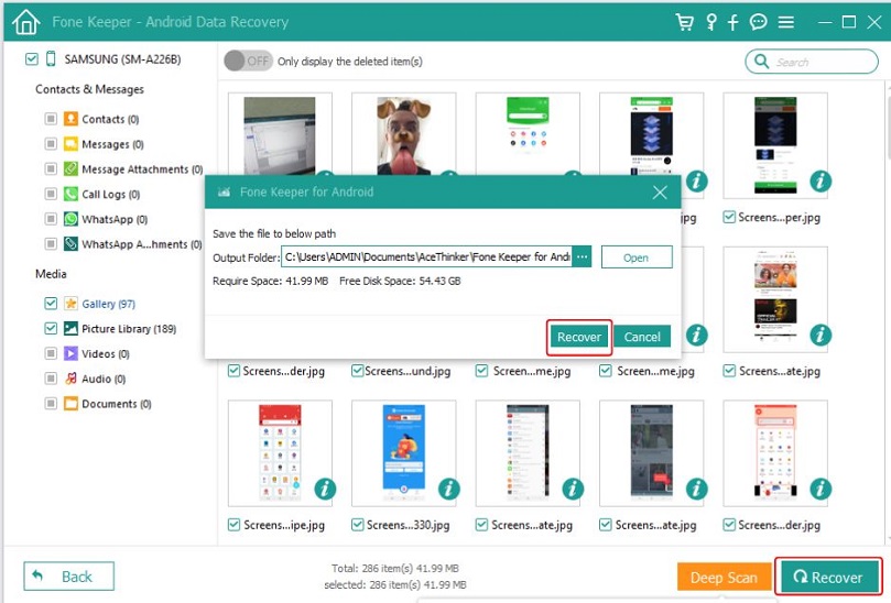 Once done, click the “Recover” button below and choose an output folder from the pop-up box. Lastly, hit the "Recover" button from the pop-up box to start the process.