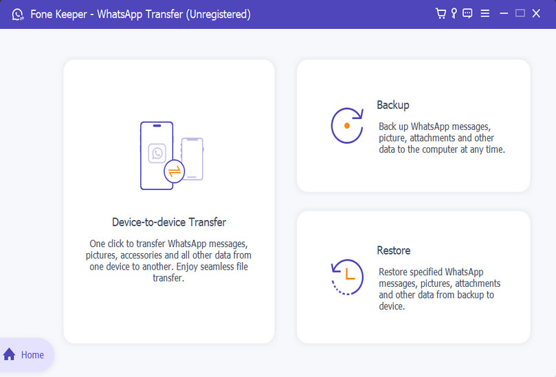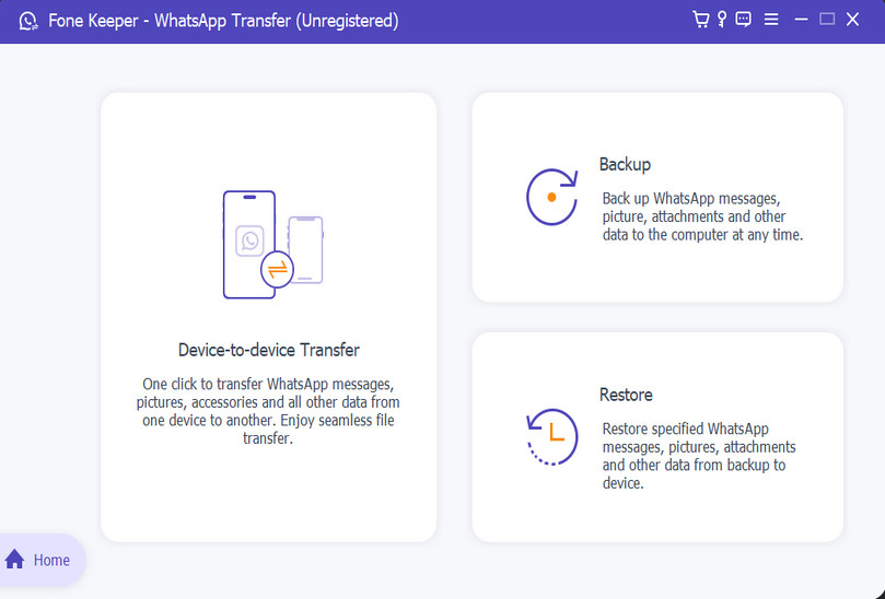 Open the tool, choose WhatsApp Transfer on the main screen, then select Device to Device from the next page.