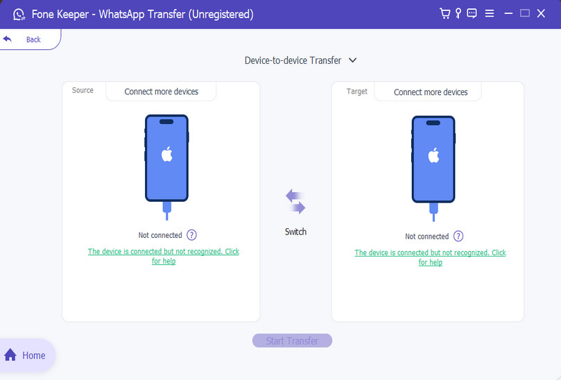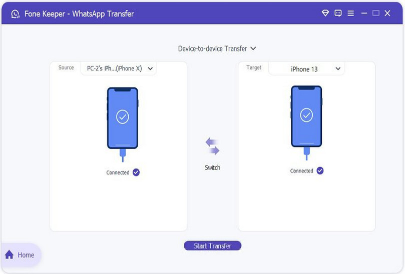 Once both devices are connected, click "Start Transfer," and the tool will initiate the transfer process.
